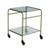 Oplev charmen og anvendeligheden med Zephyr Sidebord. Dette elegante sidebord er fremstillet af gennemsigtigt glas og solidt metal, og det præsenterer en blød grøn farve, der tilfører en følelse af ro til enhver indretning. Zephyr er designet til at være flytbar og funktionel, hvilket gør det ideelt til opbevaring af alt fra bøger til magasiner, eller det kan anvendes som en dekorativ platform for din eftermiddagste. Med sin stilfulde tilpasningsevne, er Zephyr det perfekte møbel til at opbevare dine favoritter, om det er bøger, magasiner, eller en smuk vase.